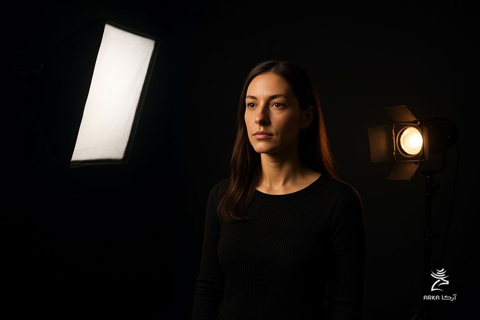 ✅ پیشنهاد آرکا: برای ضبط مصاحبه یا ویدیوهای تبلیغاتی، از نور ۴۵ درجه استفاده کنید تا چهره هم روشن باشد و هم حجم طبیعی خود را حفظ کند.